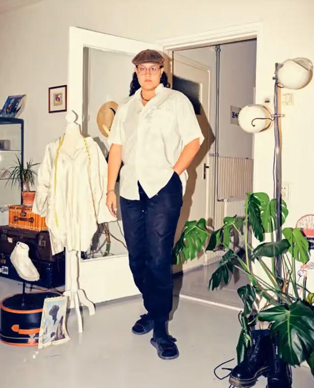 Every outfit begins with a narrative. Color, shape, materials, and location come together to form characters rooted in Aruba’s history. Through upcycling and imagery, Quiana reflects on fading